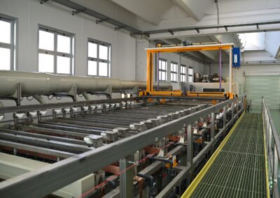 La linea si compone di vasche modulari collegate da sistemi automatizzati che curano ogni dettaglio: dalla preparazione delle superfici alla deposizione galvanica di rame e stagno, fino ai trattamenti finali di risciacquo e asciugatura. L’automazione avanzata assicura costanza nei risultati, con parametri monitorati in tempo reale da sensori e sistemi di controllo. L’impianto integra inoltre soluzioni per la sicurezza e la sostenibilità, con aspirazione dei vapori e impianti di trattamento delle acque.